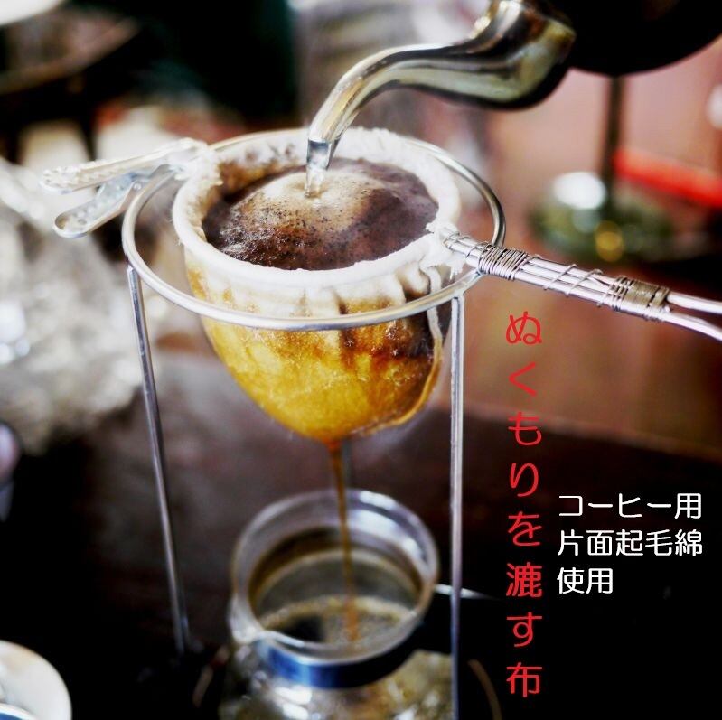 フランネルと呼ばれる片面が起毛した生地を縫い合わせて作られており、その起毛した毛先をコーヒーの味や美味しさが伝い、ネルならではの奥行きのある味やアロマを落としていきます。